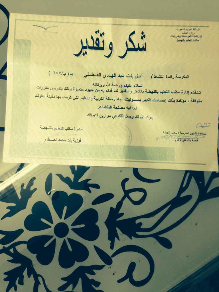الإبتدائيه ٢٤٧ Pa Twitter شهادة شكر وتقدير من مديرة مكتب التعليم بالنهضه لرائدة النشاط امل الفضلي Http T Co Ofqydjgdib