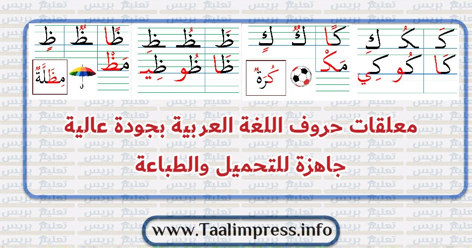 معلقات حروف اللغة العربية بجودة عالية جاهزة للتحميل والطباعة